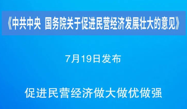 近日,中共中央、国务院印发《关于促进民营经济发展壮大的意见》(下称《意见》),为民营企业带来了发展信心,让各界为之心神一振。