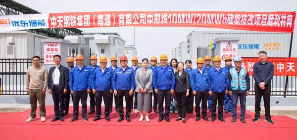 On April 24, the grid-connection ceremony of the 10MW/20MWh energy storage power station project of Zhongtian Steel Group (Nantong) Co., Ltd. was held in the Nantong park of Zhongtian Steel. Zhang Junjie, Executive Deputy General Manager of Zhongtian Steel (Nantong) Co., Ltd., Zang Xuesong, Deputy General Manager of Zhongtian Steel (Nantong) Co., Ltd. and leader in charge of the Energy Control Center, Fang Shenzhou, Director of the Energy Control Center; Tian Xu, Senior Partner and Customer Officer of Far East Shares, Cheng Ting, Senior Partner and Senior Account Manager of Far East Shares, Delivery Manager Wu Lunzhen; Zhou Lingxia, Executive President of Jiangsu Kunlun Interconnected New Energy Co., Ltd., Chief Engineer Song Zhenghua and other leaders attended the grid-connection ceremony.