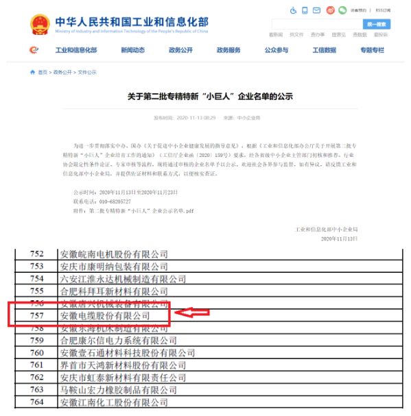 安徽电缆股份有限公司、远东复合技术有限公司凭借强大的综合实力分别入选第二、第三批国家工信部专精特新“小巨人”。