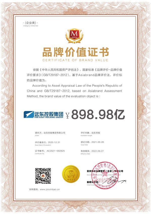 远东品牌价值再创新高,以898.98亿元的品牌价值再次上榜“亚洲品牌500强”,同时获“亚洲十大影响力品牌”“中国(行业)十大领军品牌”荣誉。